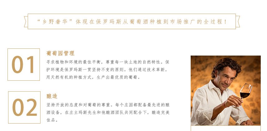 味蕾:酒體飽滿,入口圓潤(rùn),單寧細(xì)膩而柔和,層次鮮明,有各種非常成熟的水果,如櫻桃,李子,白胡椒,甘草香料的氣息,余味綿長(zhǎng)。