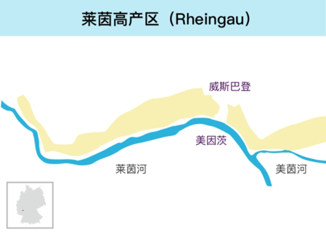 萊茵高是德國最小但最重要的葡萄酒產區之一,也是世界上知名的優秀葡萄酒產區。萊茵高位于威斯巴登( Wiesbaden)和勞赫豪森(Lorchhausen)之間,整個產區沿萊茵河分布,由西而東地形從寬闊的平原逐漸變為陡峭的斜坡,景色十分優美。