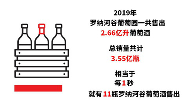 2019年,羅納河谷葡萄園一共售出2.66億升葡萄酒,總銷量共計(jì)3.55億瓶。這樣計(jì)算下來,在2019年里的每一秒,都有11瓶羅納河谷葡萄酒售出,消費(fèi)者對羅納河谷葡萄酒的喜愛與信賴可見一斑。