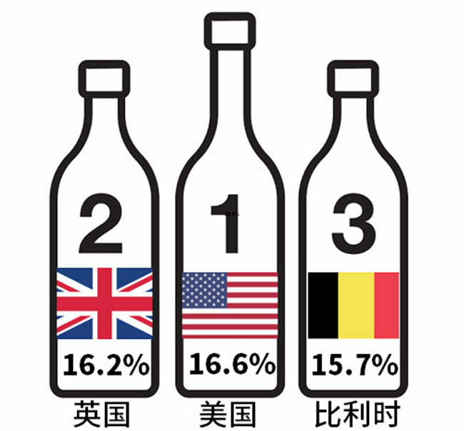 按大洲劃分的話,歐洲、北美和亞洲是主要出口地,羅納河谷葡萄酒分別有61%、24%和12%的出口量流向了這些地區(qū)(qū),其他的出口市場合起來僅占3%。若按國家劃分的話,羅納河谷葡萄酒的前三大貿(mào)易國則依次為美國(約1,465萬升)、英國(約1,427萬升)、比利時(shí)(約1,379萬升),大概分別占據(jù)羅納河谷葡萄酒出口總額的16.6%、16.2%和15.7%。此外,中國市場可以說是一匹“黑馬”,2019年的出口量約為697萬升,占據(jù)的出口份額從2014年的第八位躍升至現(xiàn)在的第四位,而這得益于該產(chǎn)區(qū)(qū)對中國市場的重視與持續(xù)(xù)發(fā)(fā)力。