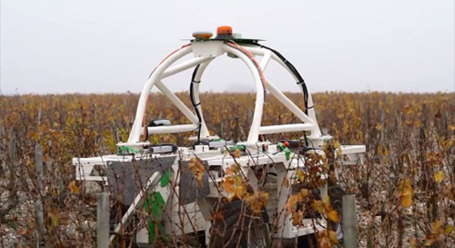 葡萄園除草機(jī)器人是較為常見和基礎(chǔ)的機(jī)器人,它們能夠快速精準(zhǔn)地去除雜草。除此之外,由于體型較輕且?guī)в兄悄茏R別功能的特點(diǎn),這類機(jī)器人對土壤和生態(tài)的破壞極小。2017年,與木桐酒莊(Chateau Mouton Rothschild)同門的克拉米倫酒莊(Chateau Clerc Milon)便在其葡萄園內(nèi)測試了一款叫作“泰德(Ted)”的除草育土機(jī)器人。