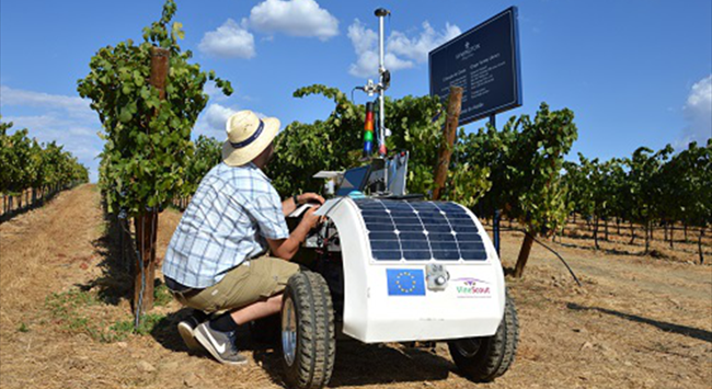 此外,還有用于監(jiān)控葡萄園內(nèi)生長狀況的機(jī)器人。這類機(jī)器人通過全球定位系統(tǒng)和傳感器收集葡萄園內(nèi)數(shù)據(jù),對葡萄樹的長勢、葡萄園的灌溉、葡萄果實(shí)的生長狀況,以及葡萄園的產(chǎn)量進(jìn)行監(jiān)控和分析,并通過無線信號將數(shù)據(jù)等信息傳輸?shù)揭苿釉O(shè)備上,方便管理者實(shí)時掌控葡萄園情況。葡萄牙大名鼎鼎的波特酒(Port)釀造者——辛明頓家族酒莊(Symington Family Estates)使用的“葡萄樹哨兵(Vine Scout)”機(jī)器人便是一款監(jiān)測葡萄樹健康狀況的機(jī)器人。