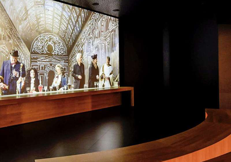 這是一個(gè)虛擬的宴會(huì),但參觀者卻擁有身臨其境的感覺,仿佛自己與丘吉爾(Churchill)、托馬斯·杰斐遜(Thomas Jefferson)和拿破侖(Napoleon)等世界偉人同坐在一桌宴席上,傾聽他們講述自己對(duì)葡萄酒的見解。