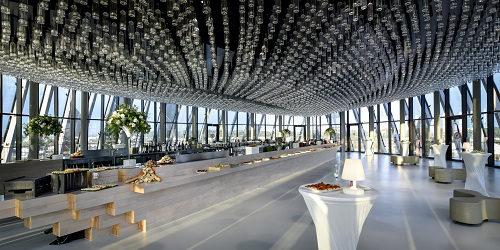 葡萄酒文化城的頂部是一個(gè)帶有玻璃幕墻的品嘗室,可以360度俯瞰波爾多的美景。任何買過常規(guī)展廳門票的游客都可以在這里免費(fèi)品嘗一款葡萄酒。你可以選擇一個(gè)最佳的觀景地點(diǎn),邊欣賞美景邊享用美酒,實(shí)在是太愜意了。