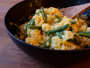 意大利燴飯是意大利北部的特色菜,具有非常豐富的混合口感,可以演化出多種味道的組合。這道菜以少量藏紅花米飯為主體,可以搭配各種白色肉類-此時(shí)