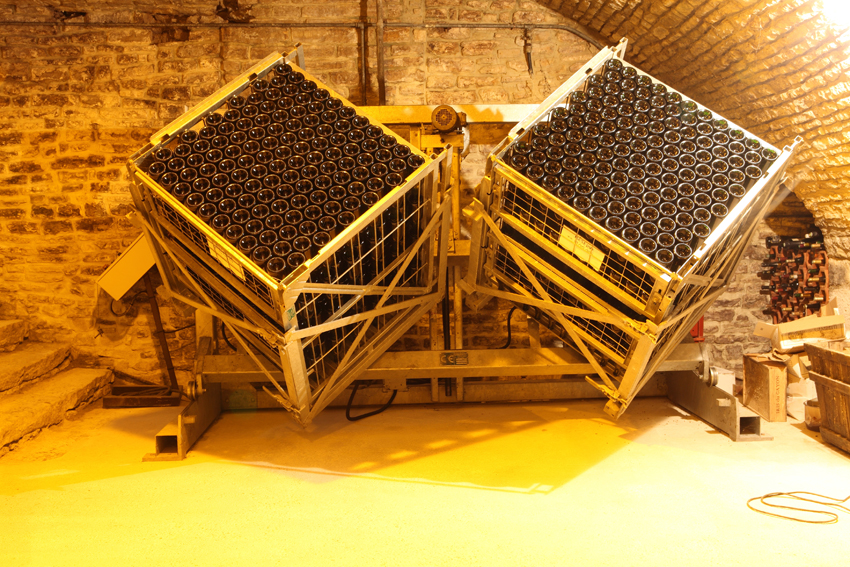 在經(jīng)過這個(gè)漫長的時(shí)期之后,需要去除在二次發(fā)酵過程中形成的沉淀物,使葡萄酒重新變得清澈。轉(zhuǎn)瓶的工序指的是每天轉(zhuǎn)動(dòng)瓶口朝下放置的葡萄酒瓶,以便使沉淀物集中在瓶子的頸部,使其能夠在冷卻除渣(dégorgement)的工序中被取出。