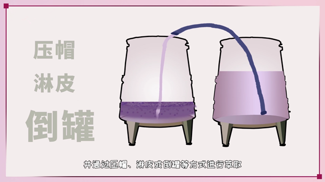 ③ 倒罐和回混(Rack and Return):將發(fā)酵中的葡萄汁排出至另一個(gè)發(fā)酵容器中,僅剩下酒帽,再將葡萄汁泵回至酒帽上。