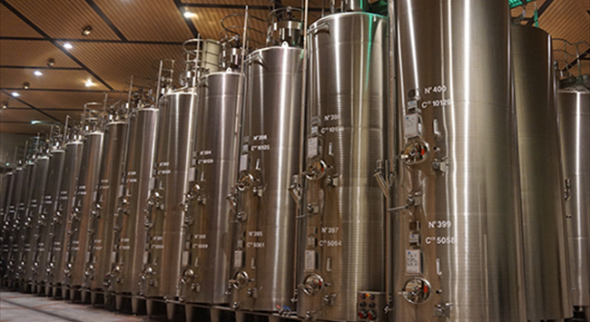 葡萄經(jīng)過(guò)去梗和破碎之后,便會(huì)轉(zhuǎn)移至發(fā)酵罐中。發(fā)酵容器可以是不銹鋼罐、水泥罐或是橡木桶,且一般容量較大,頂部為敞口設(shè)計(jì),便于釀酒師在發(fā)酵過(guò)程中對(duì)酒帽進(jìn)行控制。酒帽指的是發(fā)酵過(guò)程中浮在酒液表面上的一層厚厚的果肉與果皮,如果不對(duì)酒帽進(jìn)行控制,任由其自然發(fā)展,那么下層酒液與它的接觸就會(huì)比較有限,不利于充分萃取顏色、香味物質(zhì)和單寧,因此發(fā)酵過(guò)程中,控制酒帽極為重要。