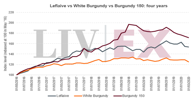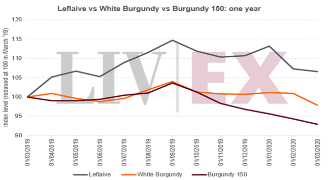 然而,在過去的一年,勒弗萊(6.5%)的表現(xiàn)也優(yōu)于勃艮第150(-7.2%)。 事實(shí)上,勃艮第150指數(shù)是表現(xiàn)最差的Liv-ex 1000分項(xiàng)指數(shù); 我們在最近的專題報告: 高峰后的勃艮第 中也探討了它的跌勢。