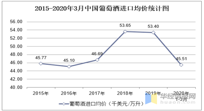 2015-2020年3月中國葡萄酒進(jìn)口均價(jià)統(tǒng)計(jì)圖