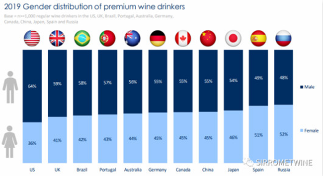 中國和美國飲用高檔酒的消費者比例最高。在美國每瓶酒的消費至少為15美元,而在中國每瓶酒高達500元人民幣(70美元)中國有一項特別值得注意的統計數據:2011至2019年,法國葡萄酒的消費量從83%下降至59%,而加州葡萄酒的消費量卻從16%上升至21%。