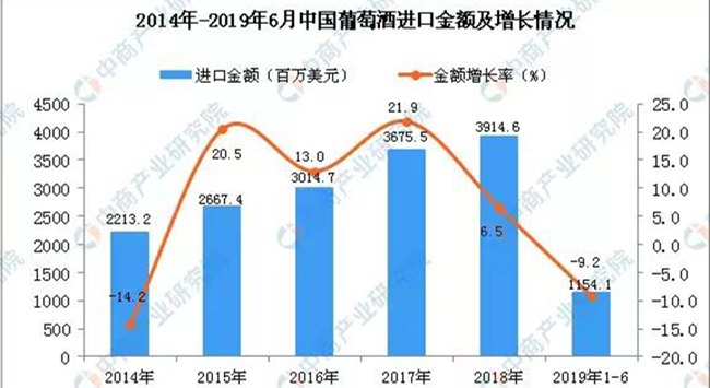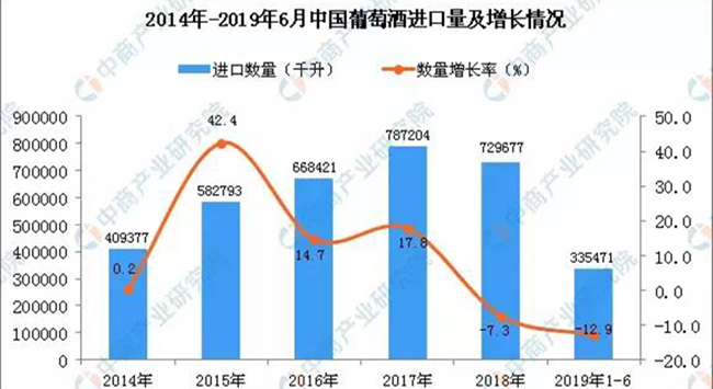 數(shù)據(jù)顯示,2019年上半年中國葡萄酒進口量為335471千升,與去年同期相比下降12.9%;進口總金額約為14.6億美元。與去年同期相比下降9.2%。