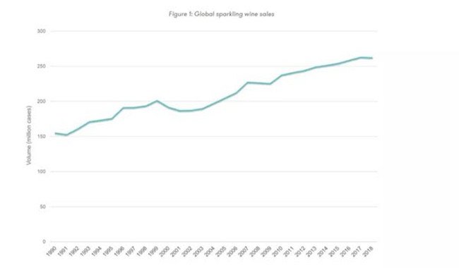 很長時間以來,全球氣泡葡萄酒銷量都呈現(xiàn)上漲趨勢