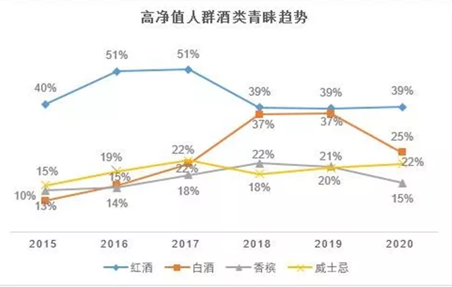 實(shí)際上,葡萄酒已越來越成為中國(guó)消費(fèi)者喜愛的酒精飲料。據(jù)胡潤(rùn)研究院發(fā)布《2020胡潤(rùn)至尚優(yōu)品—中國(guó)千萬富豪品牌傾向報(bào)告》顯示,中國(guó)高凈值人群(平均家庭總資產(chǎn)4600萬元)最青睞酒類是紅酒,對(duì)葡萄酒的喜愛甚至超過白酒。