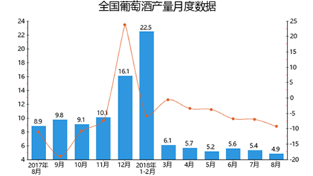 2018年1-8月全國葡萄酒產量統計分析