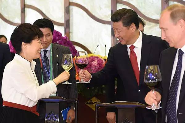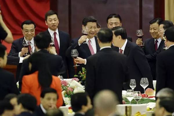 宴會上一團和氣,習(xí)大大與彭麻麻與各國的領(lǐng)導(dǎo)親切的交談,整個宴會廳都呈現(xiàn)出一派其樂融融的氣氛。