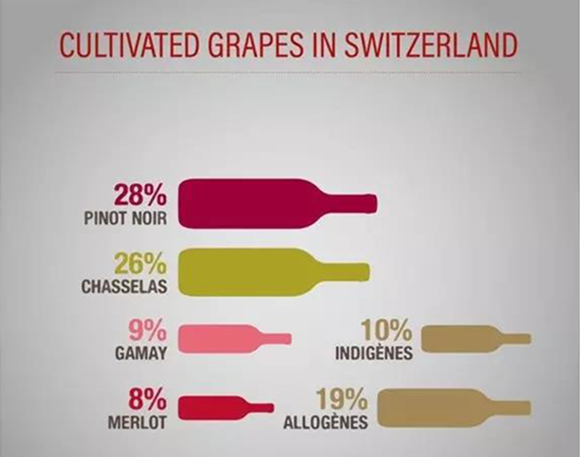 同樣,瑞士在選送的葡萄品種上也呈現出了多樣性,超過50多種。其中,瑞士的白葡萄之王莎斯拉(Chasselas)占據主導地位(133款),其次為黑皮諾(89款)和梅洛(37款),而本土品種佳瑪蕾(Gamaret,33款)和小奧銘(Petite Arvine,30款)也緊隨其后。36%的瑞士本土品種組成了這個國家多姿多彩的葡萄產業與文化。