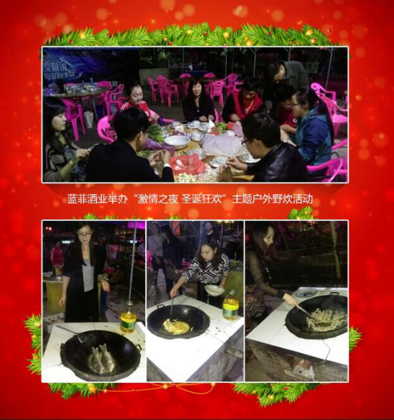 12月25日,適逢圣誕節(jié)來(lái)臨之際,公司組織藍(lán)菲酒業(yè)全體員工開(kāi)展“激情之夜 圣誕狂歡”為主題的農(nóng)家樂(lè)戶(hù)外野炊活動(dòng),讓全體員工在公司共度一個(gè)難忘的圣誕節(jié)。