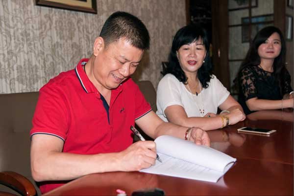 本次,Bob Franchitto及翻譯陳小姐,在藍菲酒業董事長莊榮昌先生一家的帶領下,對藍菲總部辦公環境、廣州旗艦店、會所展廳等地進行參觀考察。參觀結束后,莊總與Bob Franchitto進行了交流和座談,并簽訂了深度合作協議,確立新的合作計劃。