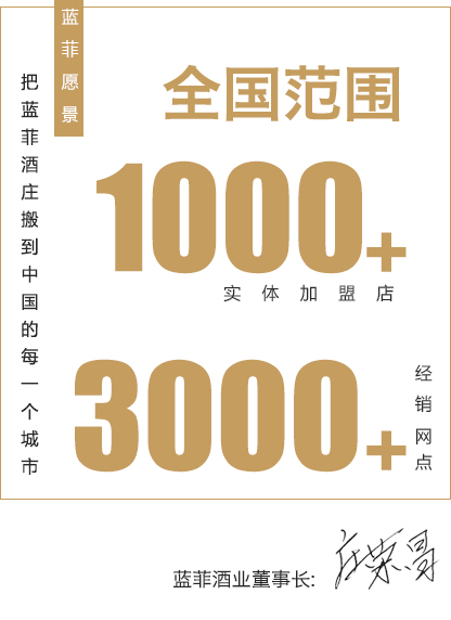 公司發展到目前為止,在全國已經有1000多家實體加盟店,3000多個經銷網點,而我為藍菲制定的企業愿景是:把藍菲酒莊搬到中國的每一個城市。這個愿景落實到實際上,就是堅持藍菲品牌化路線,打造核心競爭優勢。不僅體現在產品及服務上要嚴格要求,更要讓藍菲品牌深入人心。所以,藍菲現在在做以及未來一直要做的,是不斷超越自我,以最優質的產品、最貼心的服務,踐行品牌的核心價值,對消費者進行全方面品牌滲透,讓全國各地的代理商們都能跟著藍菲賺錢,讓他們以成為"藍菲人"而自豪。我們有實力也有信心,朝著這個愿景不斷邁進。